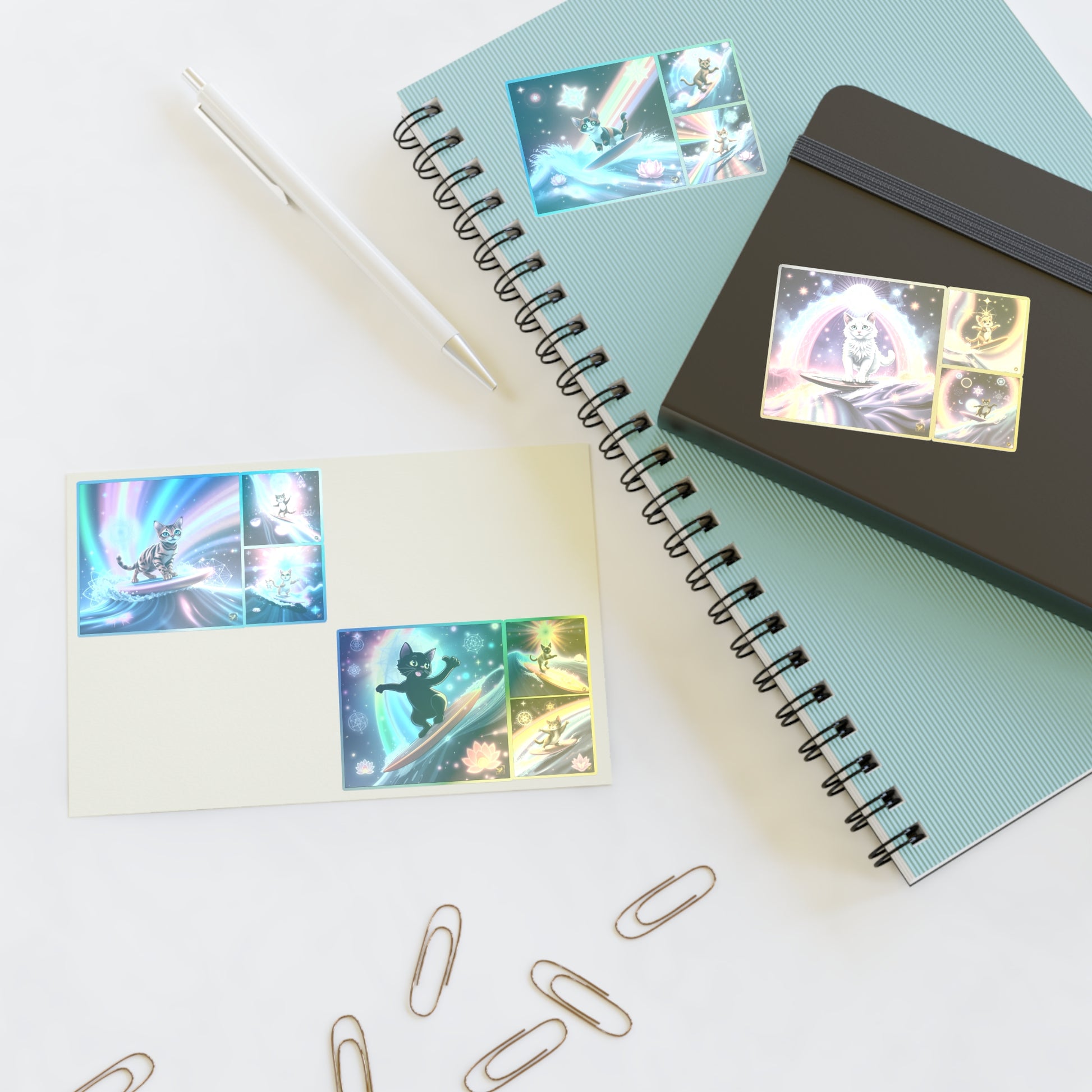 Cosmic Surfing Cat Sticker Sheets (6" x 4") โ Rainbow Lotus Light Sacred Geomtry Galaxy Cat Decals by Divine Arts