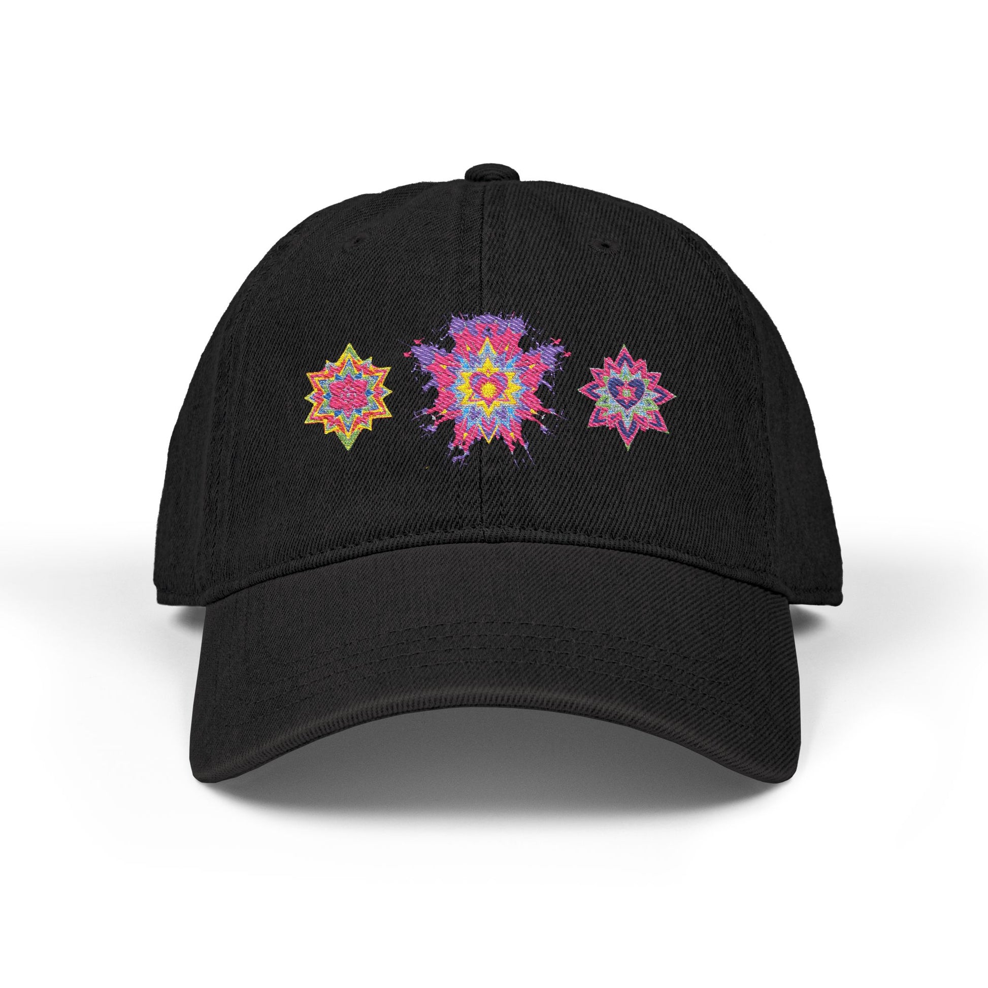The 6-panel unstructured denim hat is the perfect casual accessory for any outfit. Crafted from 100% cotton, this low-profile hat features three uniquely embroidered brilliant neon galaxy starry light bejeweled merkaba art pieces with a soft crown and a pigment-dyed finish for a timeless, vintage look that pairs with anything.ย